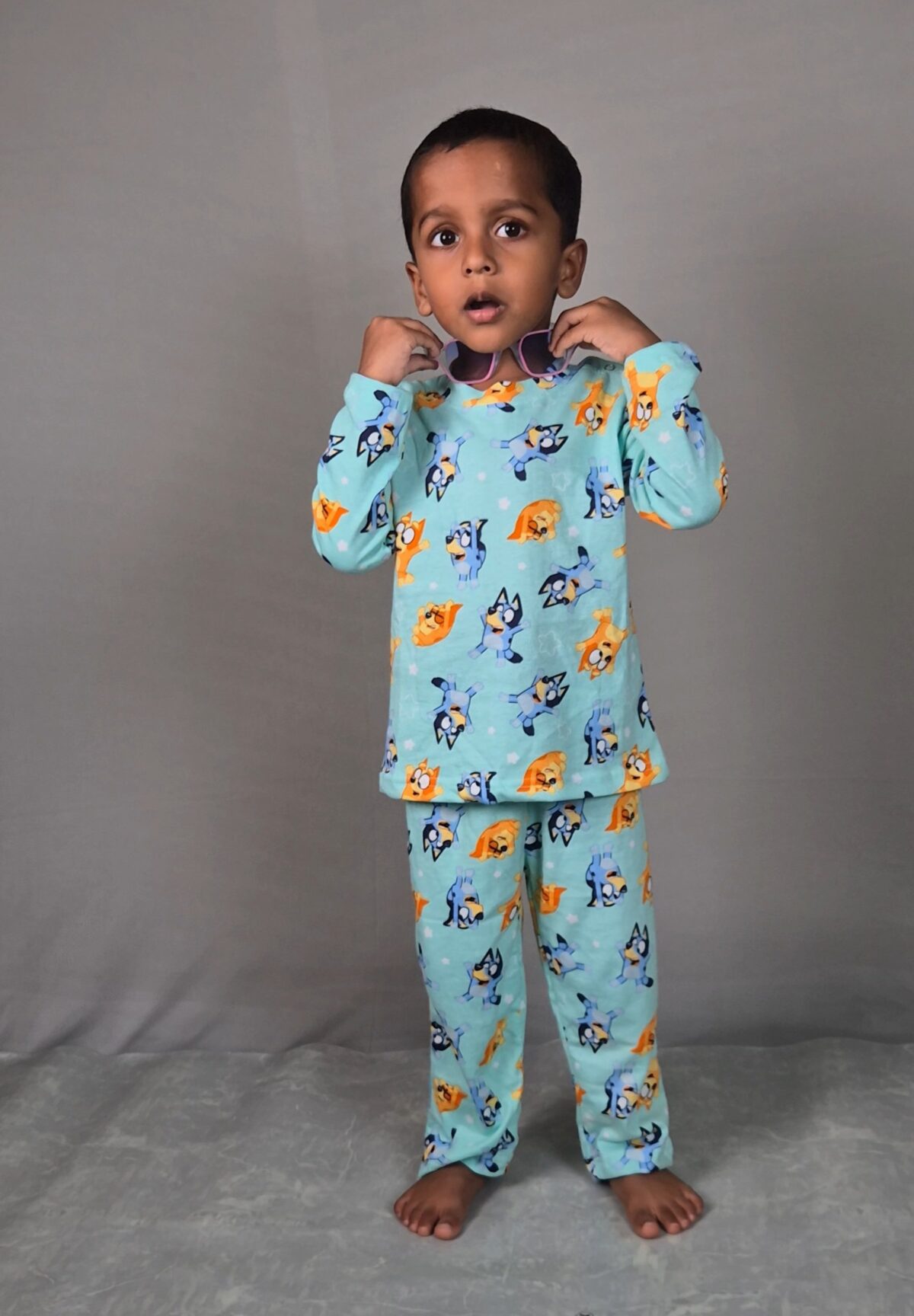 This kids’ night suit set is designed to make bedtime both comfortable and joyful. Crafted from a soft, breathable fabric, it ensures your child enjoys a cozy sleep through all seasons. The matching set features a short-sleeve top and full-length pajama pants, both decorated with bright cartoon characters for a fun and playful look. The relaxed fit allows for unrestricted movement, making it suitable for active little ones even during sleep. Gentle on delicate skin and easy to care for, this nightwear set is perfect for daily use. Its vibrant design brings excitement to bedtime routines, making it a favorite choice among children. The set is suitable for both boys and girls, making it versatile for gifting or family use. With its durable construction and high-quality materials, it retains shape and softness after repeated washing, ensuring long-lasting comfort and style.