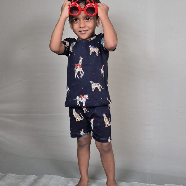 This kids’ night suit set is designed to make bedtime both comfortable and joyful. Crafted from a soft, breathable fabric, it ensures your child enjoys a cozy sleep through all seasons. The matching set features a short-sleeve top and full-length pajama pants, both decorated with bright cartoon characters for a fun and playful look. The relaxed fit allows for unrestricted movement, making it suitable for active little ones even during sleep. Gentle on delicate skin and easy to care for, this nightwear set is perfect for daily use. Its vibrant design brings excitement to bedtime routines, making it a favorite choice among children. The set is suitable for both boys and girls, making it versatile for gifting or family use. With its durable construction and high-quality materials, it retains shape and softness after repeated washing, ensuring long-lasting comfort and style.