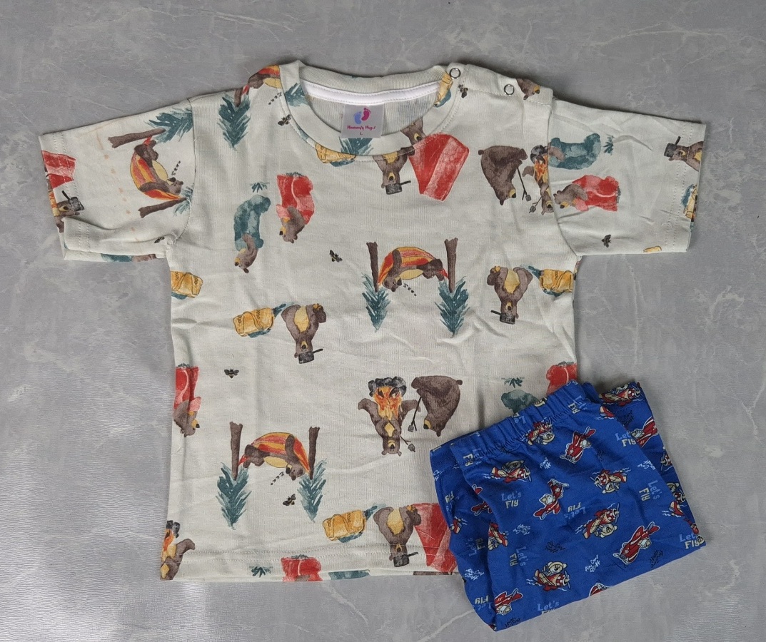 • Adventure-Themed Prints: The top features a whimsical bear and camping scene, while the shorts showcase a lively airplane pattern, offering a creative and fun combination.