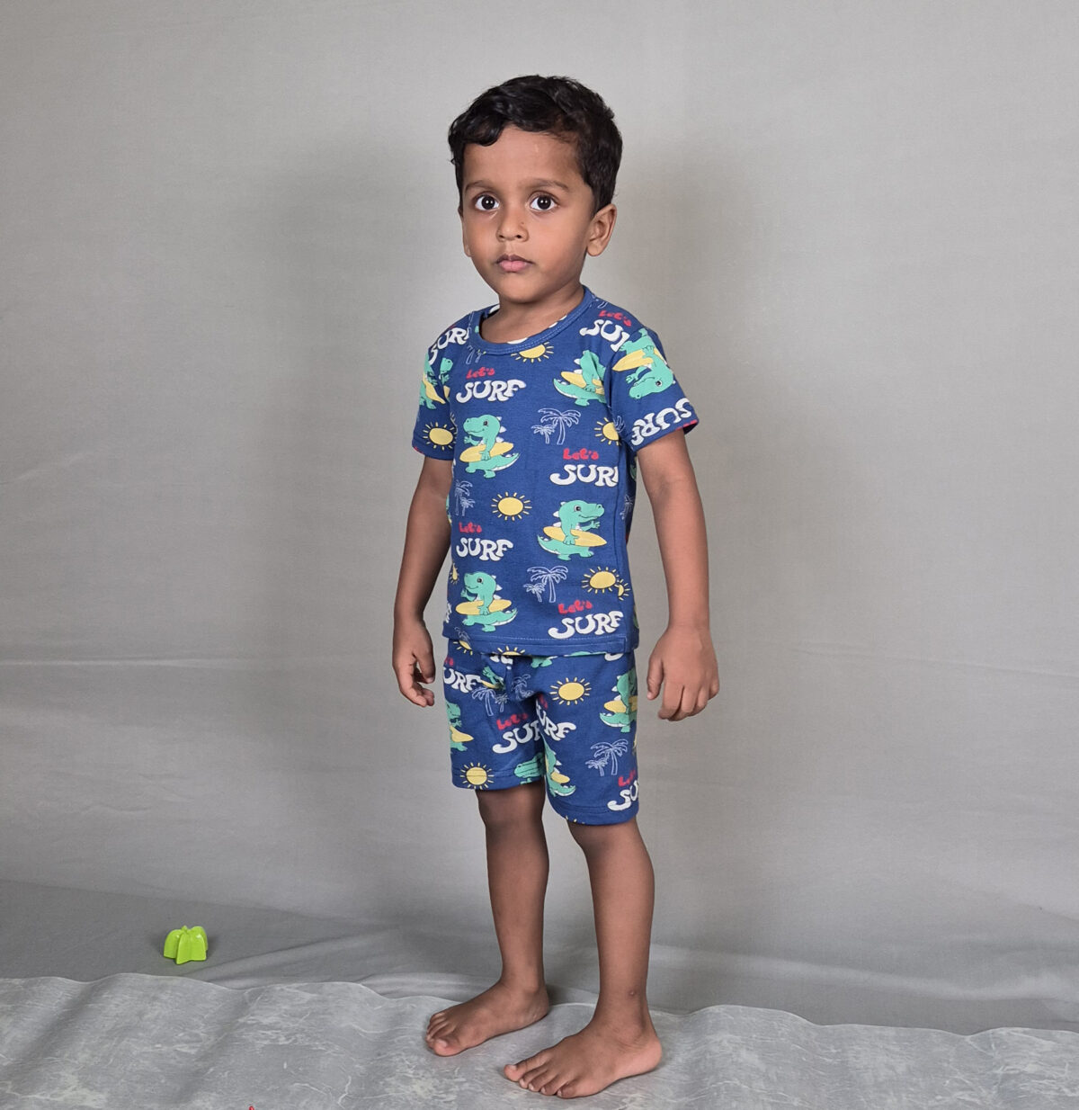 Your little one will love this super cute Blue crocodile Surf Playwear Outfit! This comfy 2-piece set features a charming print of surfing dinosaurs on soft, breathable blue fabric. Ideal for endless playtime fun or relaxed evenings, ensuring maximum comfort and smiles.